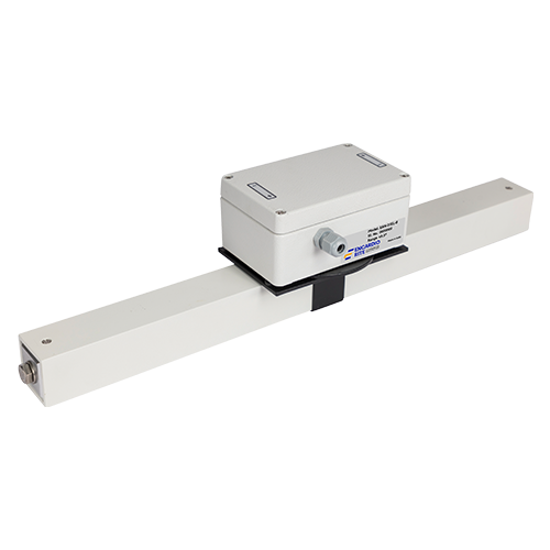 The sensor element is housed inside a rigid aluminum beam (available in 1 m, 2 m, or 3 m lengths) for precise angular measurement and excellent thermal stability.